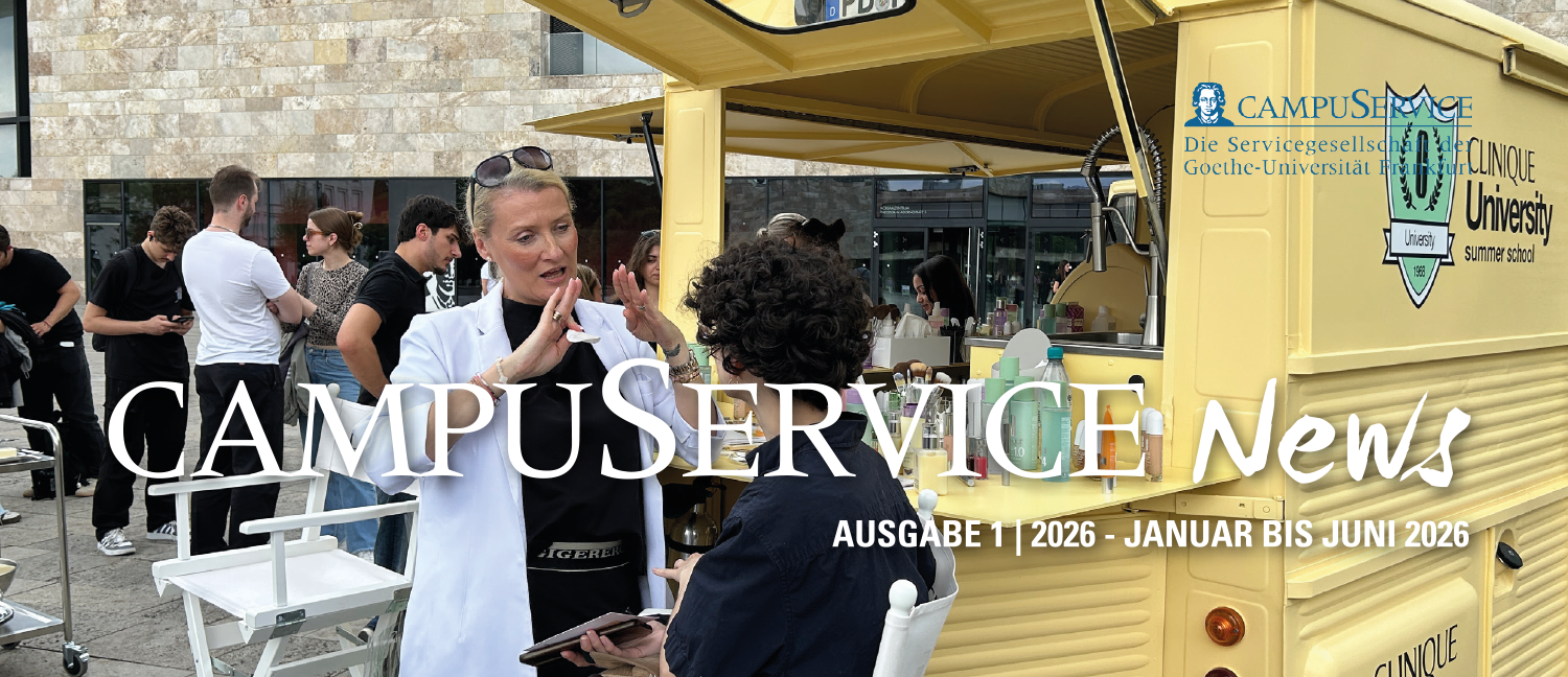 mit Beginn der zweiten Jahreshälfte rückt das Sommerfest der Goethe-Universität näher – ebenso neigt sich unser Veranstaltungsprogramm für das Sommersemester 2025 mit Jobmessen, Matching Days und Workshops allmählich dem Ende zu. In diesem Rahmen freuen wir uns, Ihnen die Ausgabe 2 | 25 unserer CAMPUSERVICE News präsentieren zu dürfen.